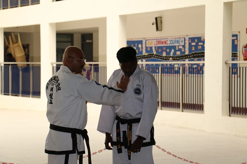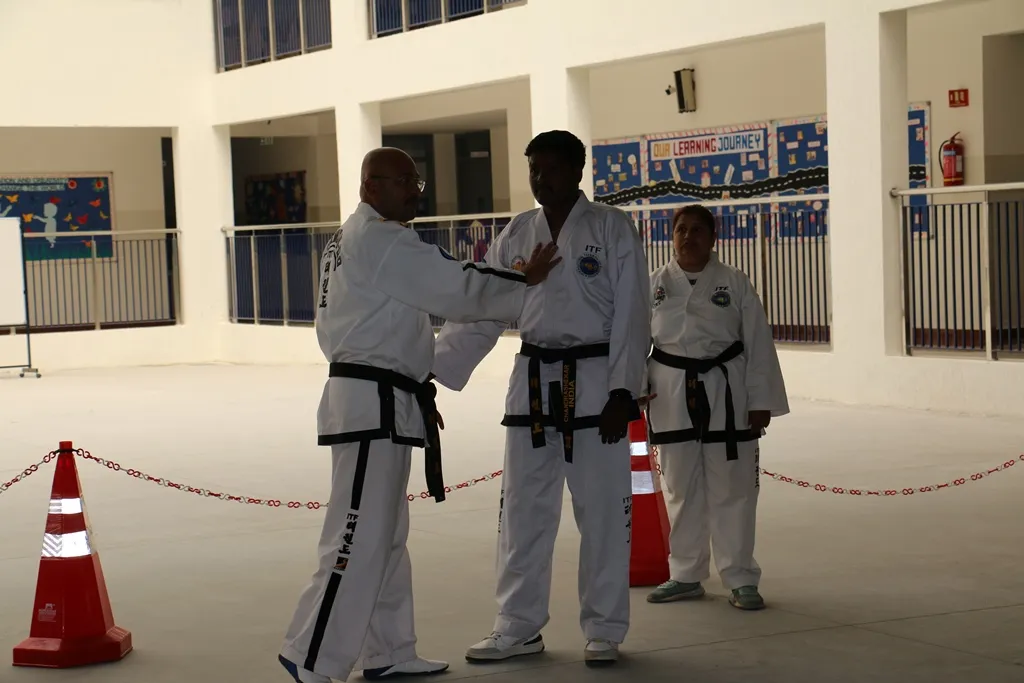 The session was conducted by Master Dr. Pradeep Janardhana, 7th DAN Black Belt, International Instructor and ‘A’ Class Umpire from the Taekwondo Association of Karnataka.
